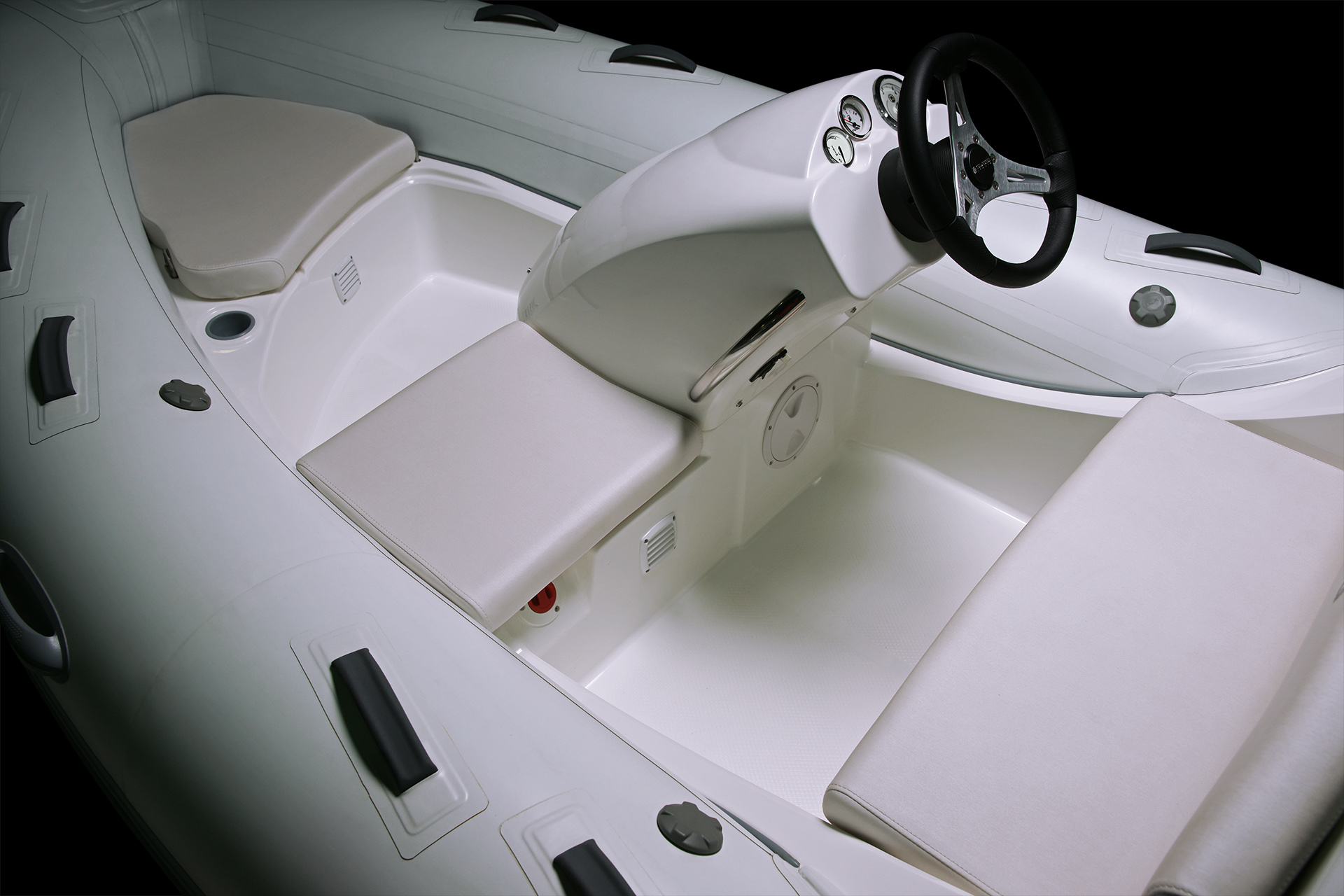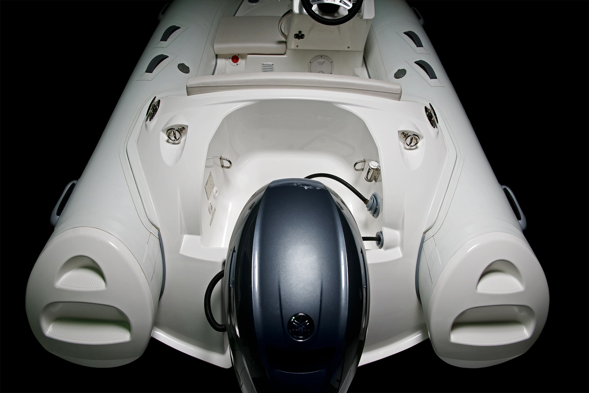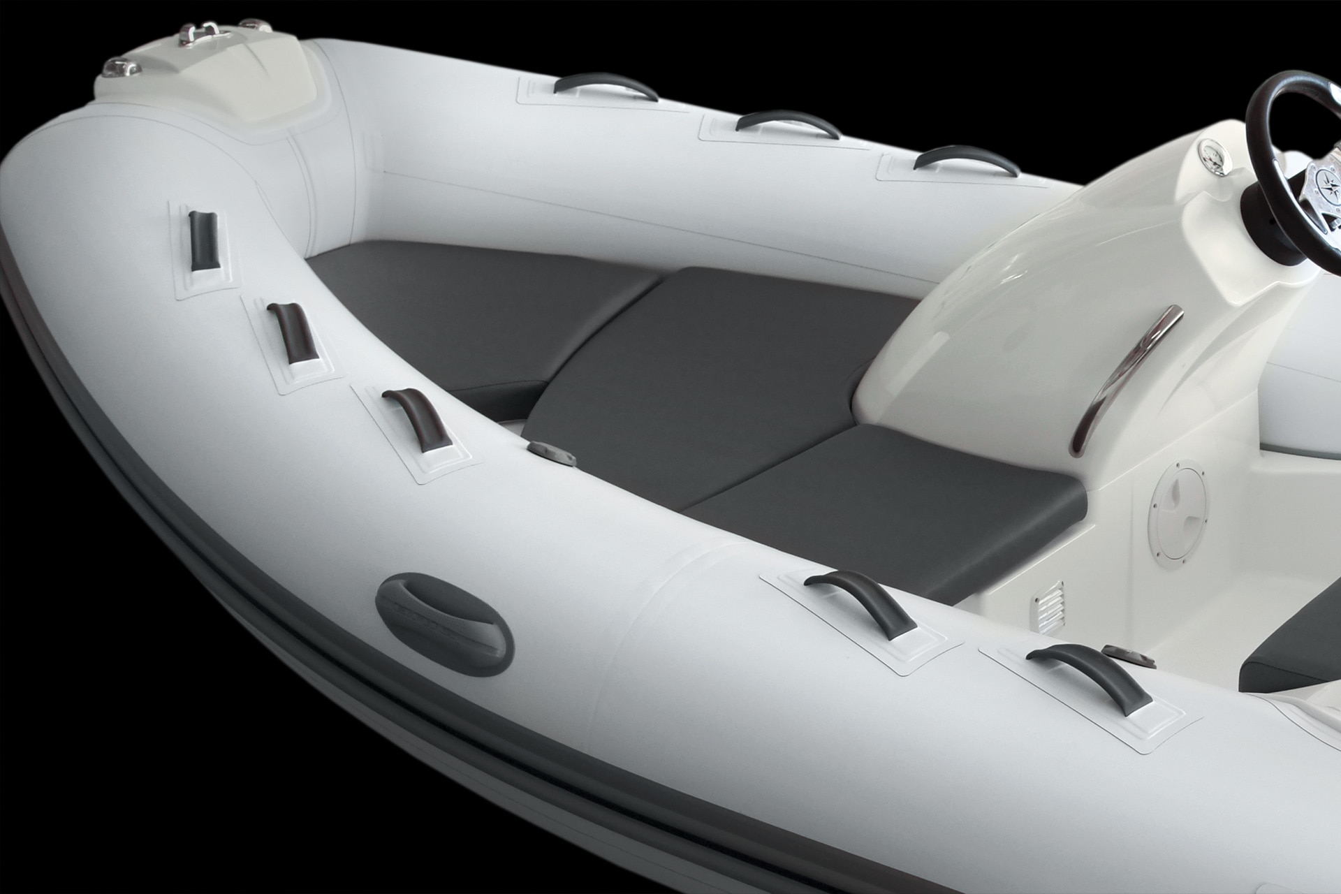 As with all the Eagle series, the Eagle 380 is designed with a reinforced deep ‘V’ hull, along with extended waterline length, extra-wide tubes and a square bow, all of which ensure a stable and dry ride even in heavy seas.