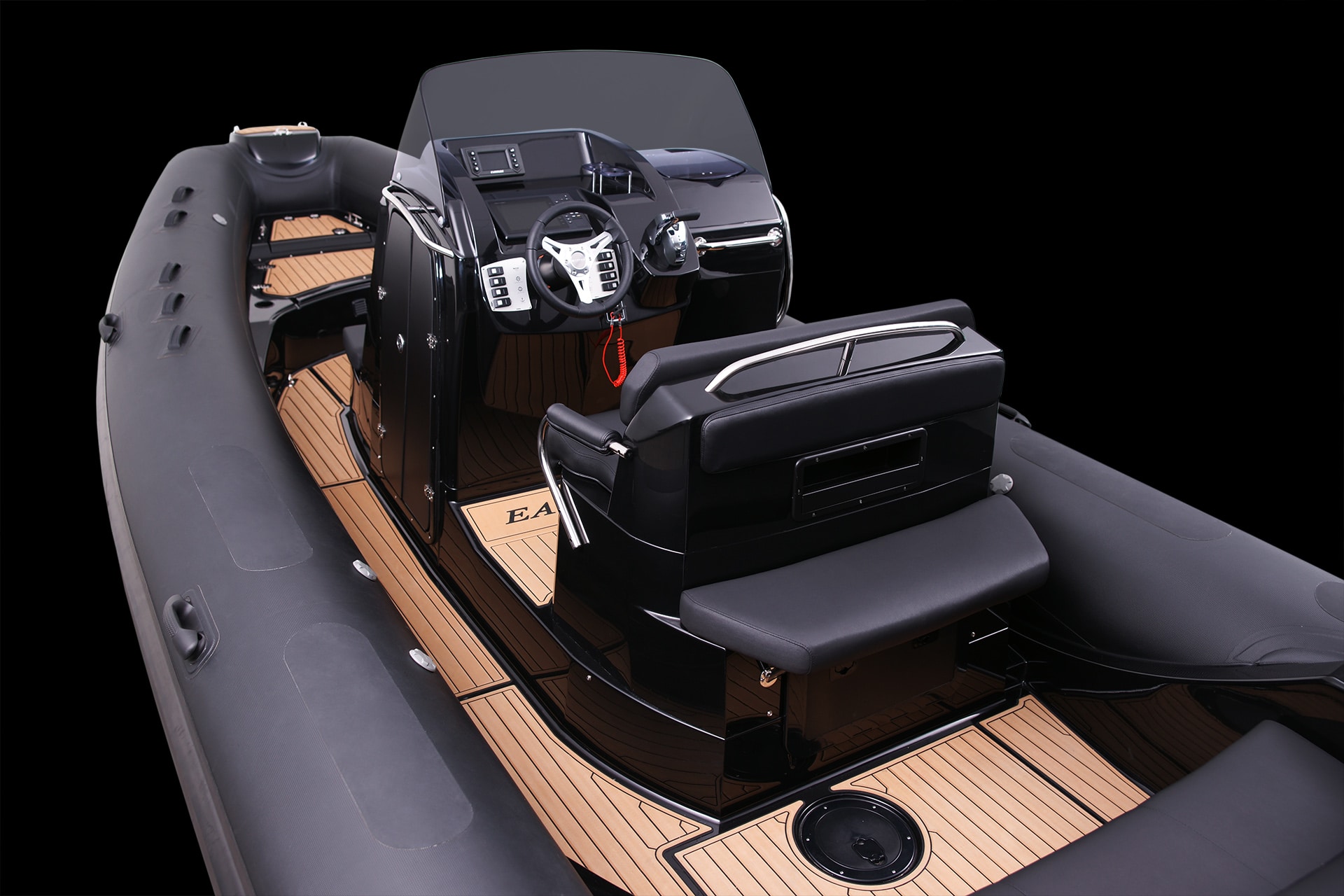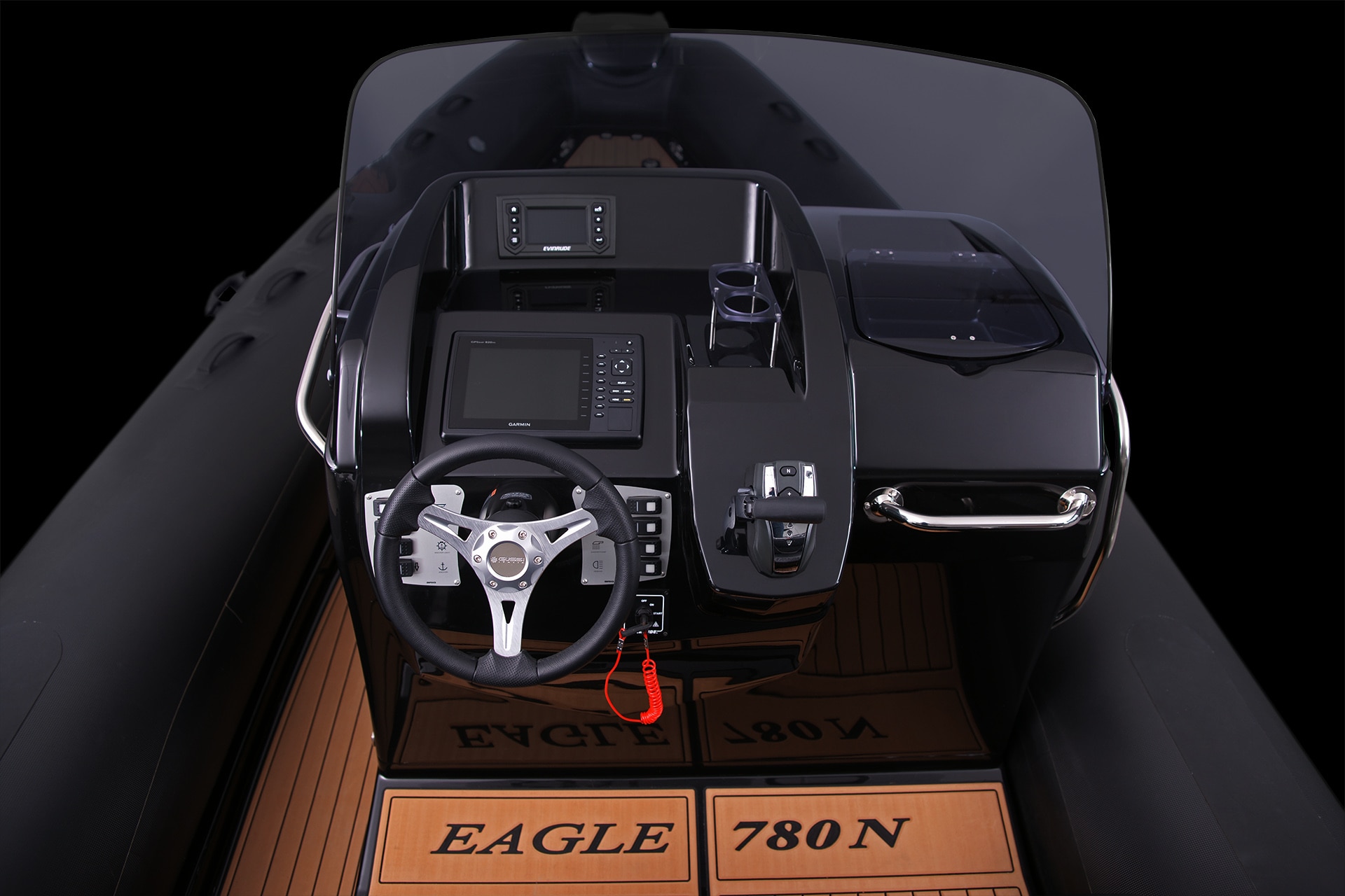 There is comfortable seating for up to 10 passengers and large lockers under each seat provide ample storage. As with all the Eagle series, the Eagle 780 is designed with a reinforced deep ‘V’ hull, along with extended waterline length, extra-wide tubes and a square bow, all of which ensure a stable and dry ride even in heavy seas.