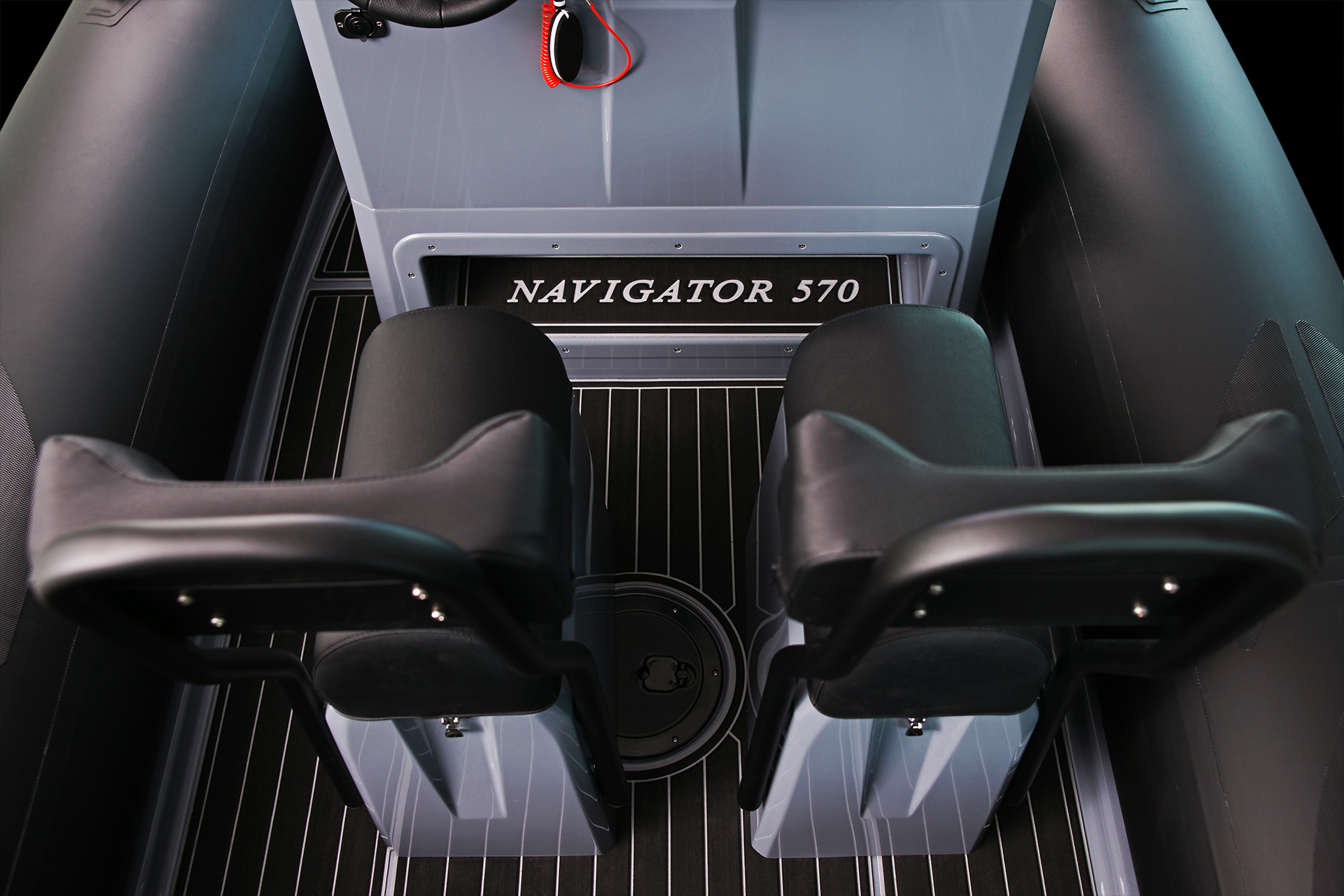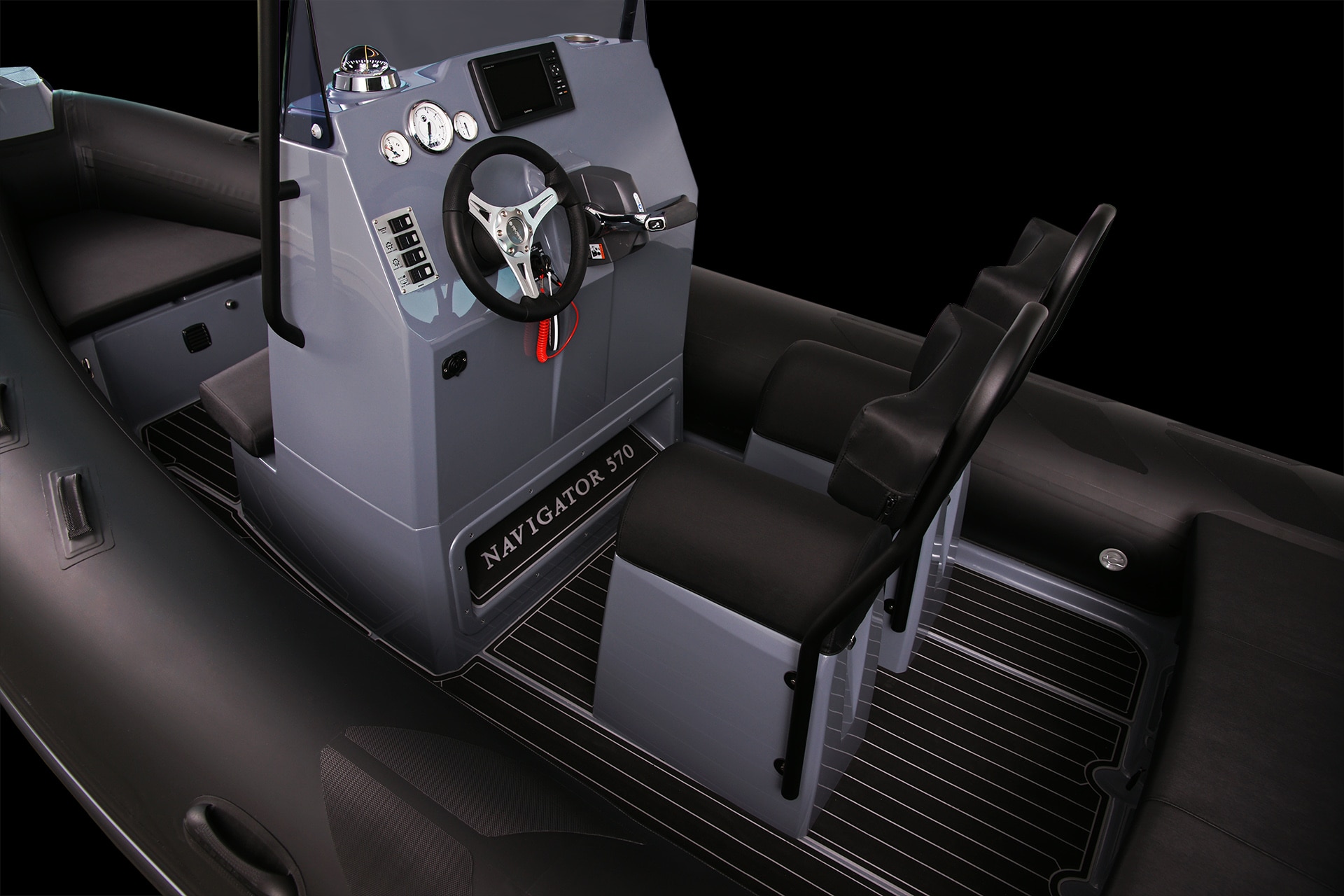 The Navigator 570 is a development of the hugely successful tried and tested Falcon 570. Using the proven hull and tube design of the Falcon 570 the Navigator boasts some clever new developments. The newly designed splash-back well incorporates a large rear watersports locker with bench seat over.